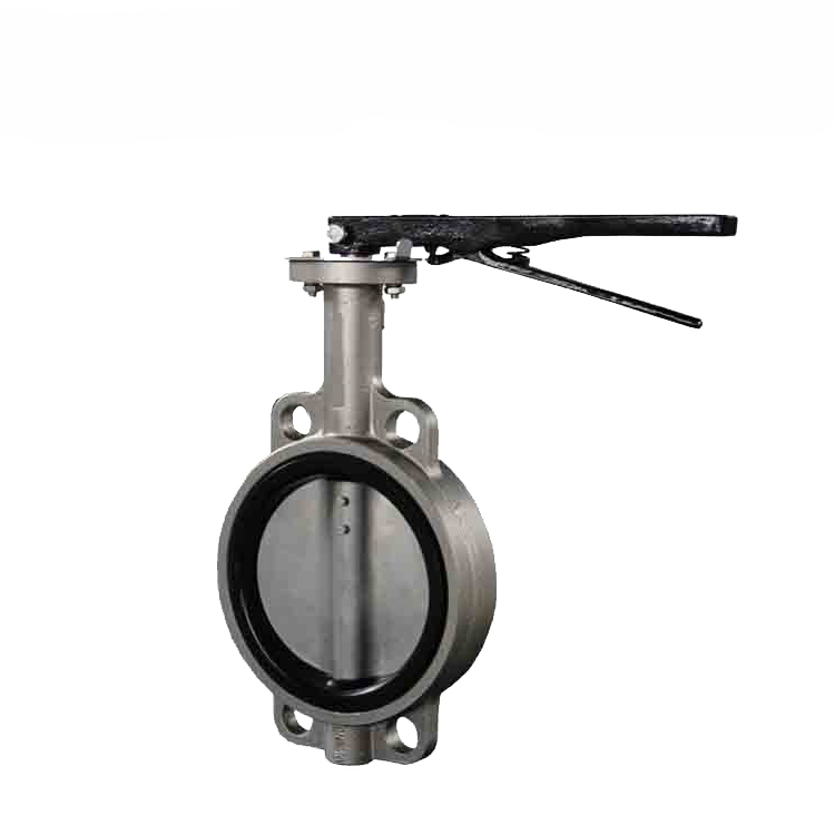 手動全不銹鋼對夾式蝶閥外形圖及尺寸表: