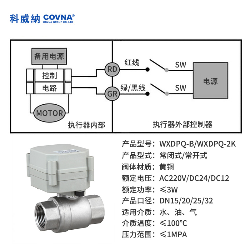 2、當(dāng)開關(guān)閉合,閥門打開,到位后執(zhí)行器內(nèi)部自動斷電。