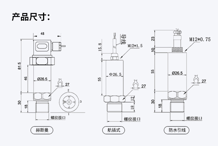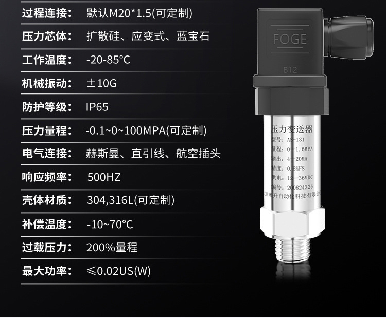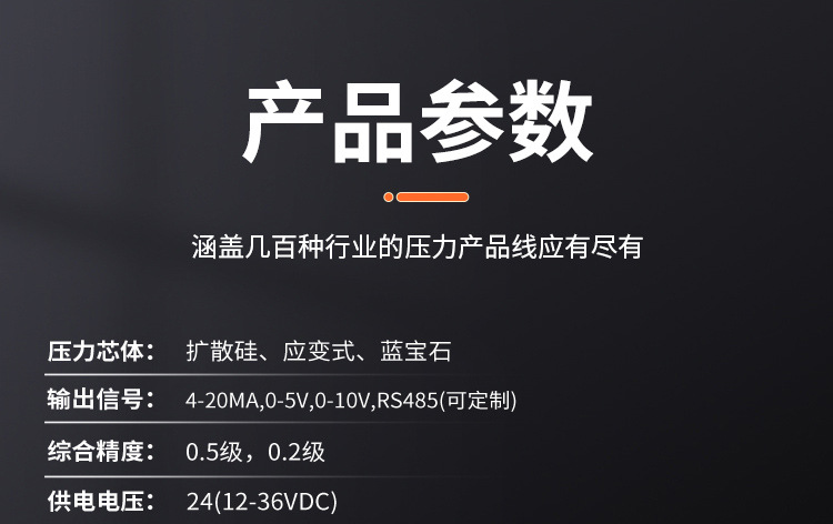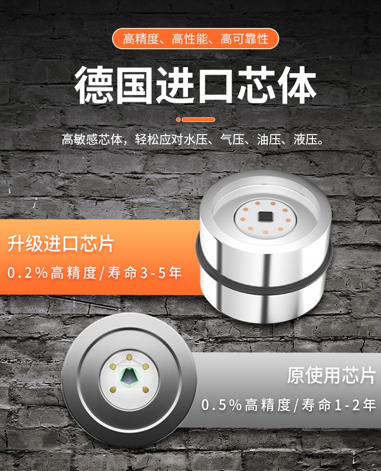 壓力芯體:擴散硅、應(yīng)變式、藍寶石