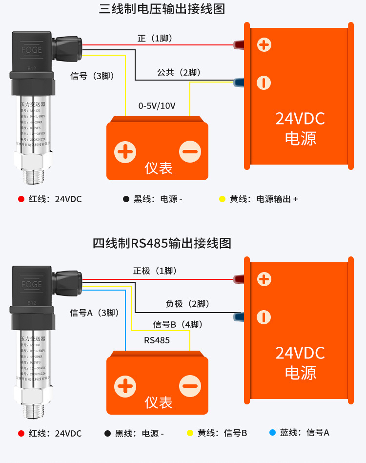 輸出信號:4-20mA,0-5V,0-10V,RS485 (可定制)